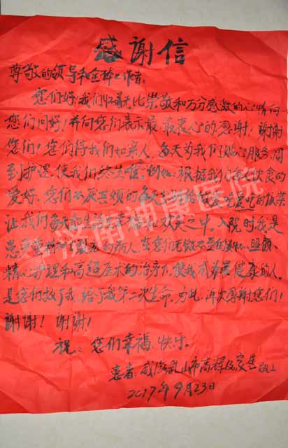 患者家属的感谢信