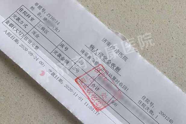 11月1日,济南神康医院三病区患者康女士家属,出于对长期以来悉心照顾的医护人员表示感谢,向主治医生马铭云悄悄塞了500元红包。